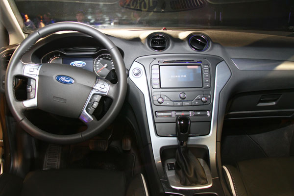內裝方面,全新的中控台採用V型曲線造型,排列更加整齊,搭配全新銀黑相間配色及亮面裝飾板,提升現代感與科技感,同時並整合最佳智能化的座艙功能,HMI人因介面再升級,整合CD、DVD的播放與行車電腦於一身,透過方向盤上的快捷鈕便可輕鬆控制。此外,全新的Ford Mondeo更採用拉簾式置杯架設計、全新中央扶手設計,全新坐椅設計提供乘客更舒適的乘車經驗,其中豪華型以上車種更採用真皮座椅,不但提供良好的支撐力與服貼的包覆感,同時也讓整體內裝的豪華感更加升級。