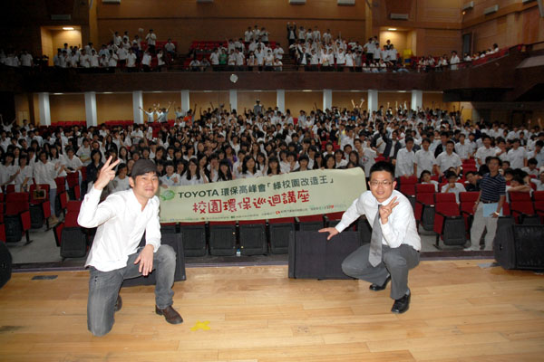 有別於傳統授課式環保教育方式,Toyota校園環保列車巡迴講座邀請新銳導演李鼎、部落客牛奶人,以創意思考、落實生活角度出發,結合在專業領域上的驗證經驗,打造創意綠校園環保生活新觀念。在報名參賽作品中也看出同學們的創意巧思,臺北市立南湖高中學生就提出,希望可以打造賽車主題廁所,藉由方向盤、車道等概念,加強使用時的準確度,就可以進一步提升學校廁所的整潔維持;國立蘇澳海事學生則看中高中生少運動、但又想減肥的特點,提議在教室中擺放發電腳踏車,這樣一來就可以一舉數得,非常具有創意。同學們創意優越的參賽表現,也讓其他學校及學生紛紛強烈爭取講座機會,皆希望能夠藉此難得機會好好改造校園,實現環保綠校園的理想。