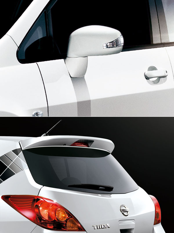 「經典耀眼LED後視鏡」與「經典有型導流尾翼」為Mr. Tiida專屬配備之一。