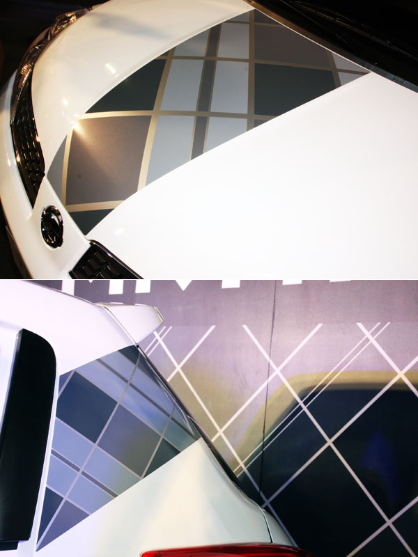 「優雅格紋車貼」展現於引擎蓋與C柱上。