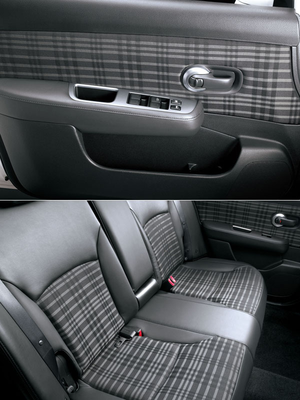 Mr. Tiida以黑灰交錯出格紋線條,展現時尚英倫貴族氣派。在外觀與內裝上配備五樣英倫風專屬配件:巧妙融入車身設計的「優雅格紋車貼」、素雅貴氣的「經典有格座椅」及「經典高雅門飾板」、搭配俐落帥氣的「經典有型導流尾翼」,以及結合歐風、展現耀眼光采的「經典耀眼LED後視鏡」。另外,Nissan還特別致贈這500位車主限量的貴族勳章鑰匙圈,讓駕駛Mr. Tiida的車主更加獨一無二。