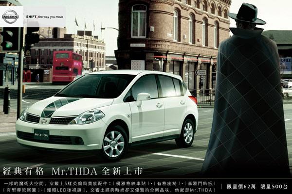 Nissan Tiida自上市以來,即以優異的空間表現、靈巧的操控性與舒適的乘坐質感,備受消費者好評,使得Tiida銷售量與市佔率逐年成長,在相同級距的市場,其市佔率更是較上市時成長了34%,不但拿下2010年掀背車銷售冠軍,更於2011年1月創下上市來最高銷售紀錄2,990台。為持續滿足消費者對時尚潮流的需求,裕隆日產嘗試將產品與流行概念揉合,推出充滿經典、時尚、英倫貴族風的Mr. Tiida。