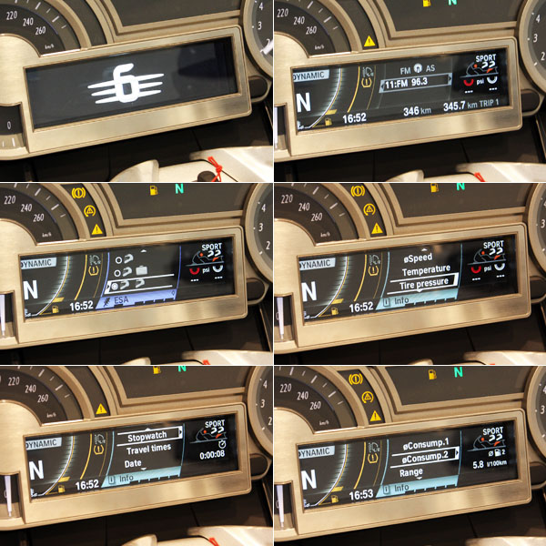 儀表中央之5.7吋TFT彩色螢幕具備行車旅行電腦,提供多樣豐富化的行車相關資訊與車輛設定等,上方為安裝衛星導航系統處,目前可對應之衛星導航系統型號為Garmin 660與BMW原廠衛星導航系統,儀表板兩側則為高音質喇叭。
