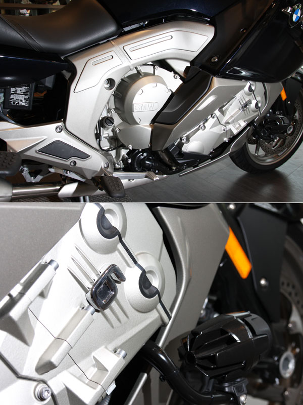 K 1600 GTL搭載1.6L直列六缸汽油引擎,寬度較傳統直六緊縮100mm來到560mm,缸徑衝程比為0.938,壓縮比為12.2:1。最大馬力為160hp∕7500rpm,峰值扭力則約17.9kgm/5250rpm。