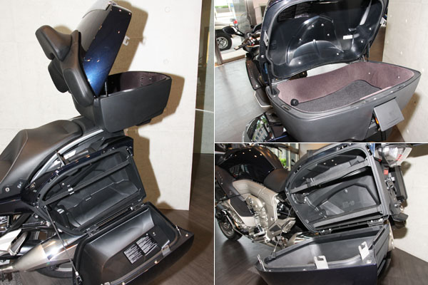 後箱與雙側箱打造的置物空間相當驚人,其中後箱更具備內照明與油壓挺桿設計,側箱也提供專屬內袋,放置行李更為便利。