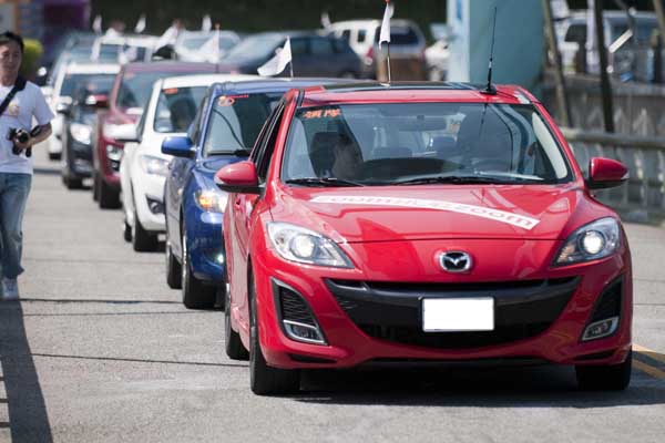 本次「Zoom-Zoom HUG」車隊集合超過30輛車,在豔陽高照的好天氣陪伴下浩浩蕩蕩出發。