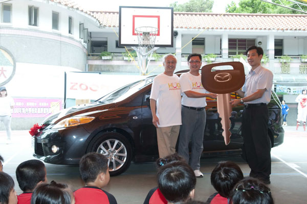 由MAZDA Taiwan執行長陸彥瑞代表提供大里國小Mazda5新車一輛(一年期),做為學生們上下課接駁之用,並商請當地經銷商東大汽車提供免費車輛保養,減輕學校用車負擔。