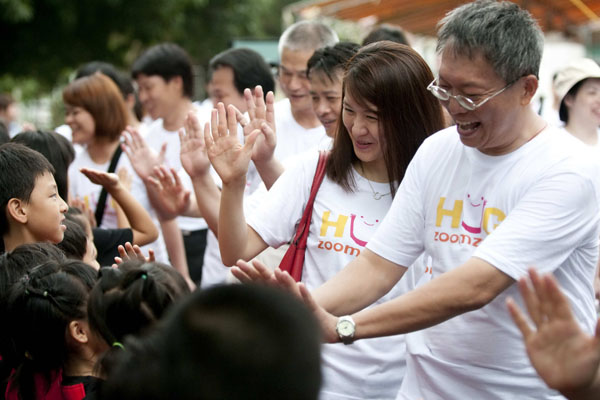 粉刷完畢後所有參與「Zoom-Zoom HUG」的成員與小朋友們擁抱道別。
