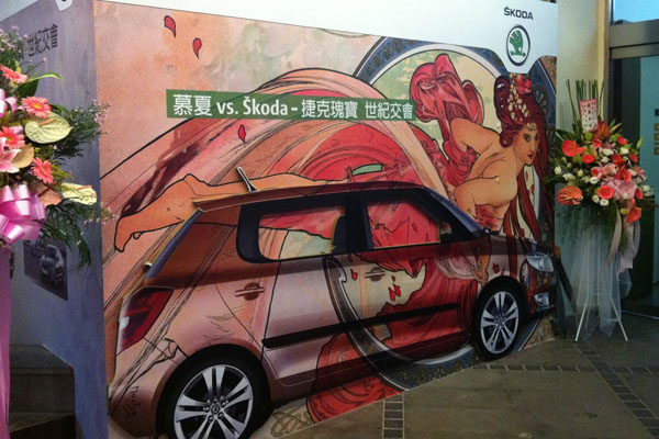 『新藝術大師慕夏大展』從6月11日在台北故宮博物院開展至9月12日,結束後將移至高雄市立美術館展覽期間從9月24日到2012年2月5日。活動期間Skoda在故宮展廳出入口,利用慕夏畫作完美結合Skoda Fabia線條美感,製作充滿設計感的車體創意看板提供參觀民眾合影,現場也擺設Skoda獨家慕夏畫卡供民眾索取。隨展來台的慕夏基金會的創辦人約翰(John Mucha;也是慕夏的孫子)看到此設計驚喜表示:「非常有創意的藝術結合!」,並對於這樣的捷克文化與汽車工藝的合作感到欣喜,並在現場立刻合影留念以便日後與國際藝文界人士分享。