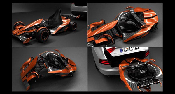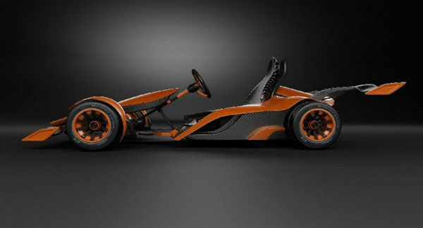首先這款全新的概念小型賽車,不僅以大量碳纖維材質打造車體,甚至與F1相同採用碳纖維單體車架設計,與一般Go Kart採鋼管材質打造車架有所不同,若是在搭配上輕量化的鋰電池組與電動馬達,空車重量也僅為65磅〈約30kg〉,也較傳統Go Kart輕上許多。更特別得是,為解決以往過去傳統Go Kart在載運時車架面積仍相當佔空間的情形,GK2G還具備對向折疊的功能,在將四只輪胎拆卸後,即可將車架自中央對折,將整體體積雖小至30英吋×30英吋×15英吋(約76cm×76cm×38cm),使其可以輕易地放入一般車款的行李廂,不用為了比賽,另外準備一輛小貨車運載小型賽車。
