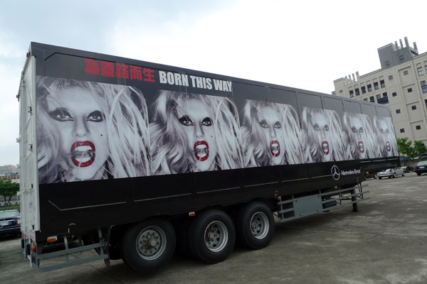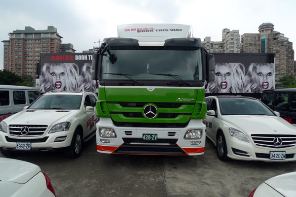 為讓【Mercedes-Benz 『BORN THIS WAY為道路而生』創意大遊行】活動更具氣勢,台灣賓士在七月二日再安排了一輛Mercedes-Benz Actros拖車,將拉著一只擁有LADY GAGA女神彩繪的40呎貨櫃壯大聲勢,為七月三日登場遊行活動製造另一個高潮。