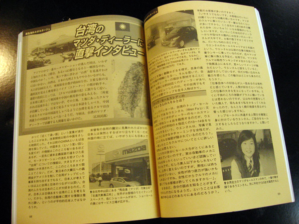Mazda在台灣市場的卓越成績更引發了日本「自動車雜誌」(Car & Maintenance)的高度興趣,日前來台製作台灣汽車市場專題報導時,該雜誌特別以Mazda作為日系品牌在台的成功經營案例,分別採訪了Mazda第一線的銷售顧問、技師、以及經營主管。