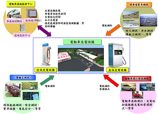 目前電動車之續航力限制與充電時間較長為消費者所關注的問題,為消除消費者的使用疑慮,國外目前均積極發展智慧型電動車服務平台,透過網路管理系統獲取電動車的行駛中電能狀態,再結合地區各充電站之位置與使用狀態等資訊,自動為車主規劃最佳效率的充電計畫;車輛中心的充電站也將具備遠端監控功能,未來再結合車輛端的資訊管理,即可完成具雲端智慧的電動車充電管理系統,作為業者未來開發電動車資訊服務系統的測試驗證平台。