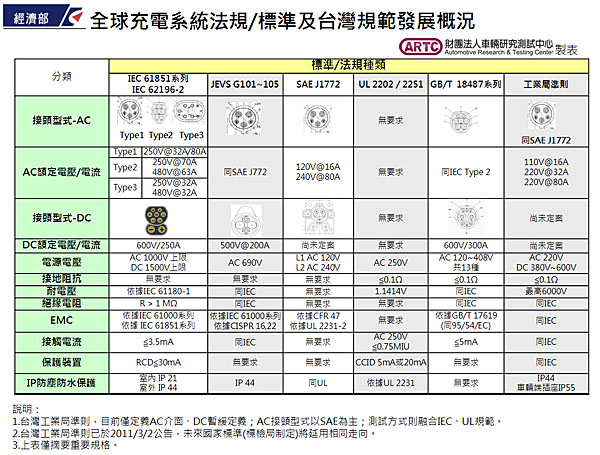 全球充電系統法規/標準及台灣規範發展概況。