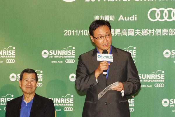 台灣奧迪總裁邱山祥在2011揚昇LPGA台灣錦標賽記者會中指出:Audi品牌與高爾夫球運動及LPGA賽事所標榜的精準、卓越與超越自我的核心價值不謀而合,台灣奧迪汽車也將在比賽期間提供多達25部的專屬禮賓車隊供選手們使用,讓遠道而來的貴客們能夠感受到賓至如歸的服務禮遇。(照片由2011揚昇LPGA台灣錦標賽主辦單位提供)