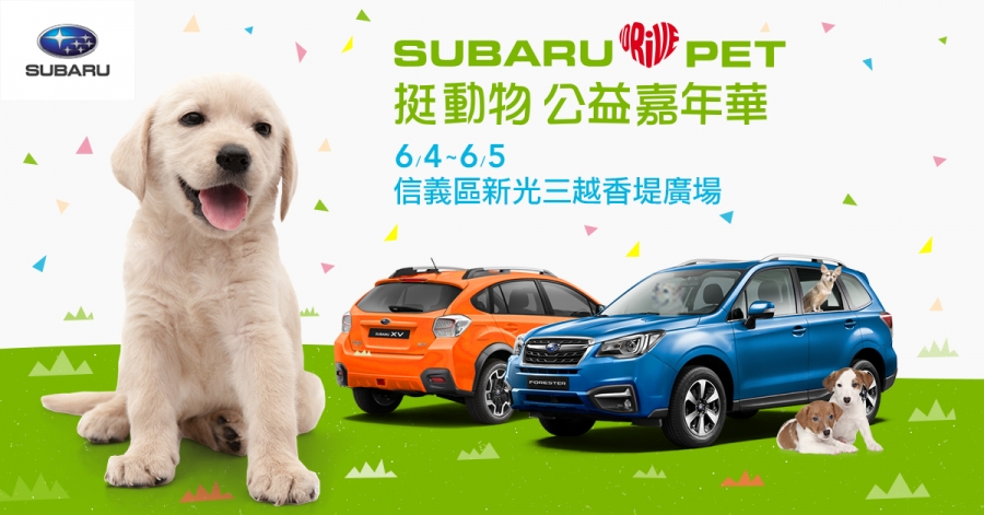 Subaru台灣意美汽車活躍於公益活動,對關懷動物議題更是竭盡全力支持,歡迎所有民眾攜帶家人朋友與毛小孩,在6月4、5日週末2天一同前來台北信義區新光三越香堤廣場,參與「Subaru LOVES PETS?挺動物?公益嘉年華」活動。