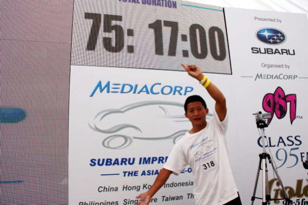 2010年的冠軍,在經歷了長達75小時又17分的竸賽後,由45歲新加坡籍的工程師Aloysius Lim選手奮力奪冠,獲得價值相當於台幣2,359,800元〈未含擁車證〉的Subaru Impreza 2.5MT Sedan新車一台。今年台灣選手第三年加入竸賽的行列,以台灣人努力不懈的奮戰精神,今年一定能夠奪得冠軍。