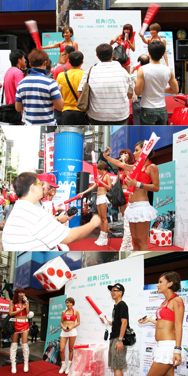 活動現場PGO不手軟贈品大放送,更有活動現場開放讓PGO車友們與PGO Show Girl火辣合照!拿贈品,同時現場賞車訂車也有優惠抽獎活動。