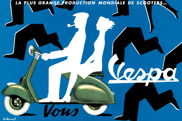 Piaggio公司成立於戰後,原先生產鐵路及飛機相關器材,有鑑於當時個人消費市場的蓬勃需求,故要將廠房做一番轉型。工程師 Corradino D’Ascanio 構思出一種兩輪交通工具的創新想法,不僅比傳統的跨騎的摩托車容易駕駛,而且其底盤、及車體的設計,還可以避免衣服不受車輪濺起的泥土弄髒衣服。他在1944年製造出機車的原型,經過兩年的測試,Piaggio 集團開始生產這個新型機車,並命名為Vespa(意思為「黃蜂」)。當時英國時報文章描述其為「完全是義大利的」產品,彷彿是多年以來前所未見之盛聞。