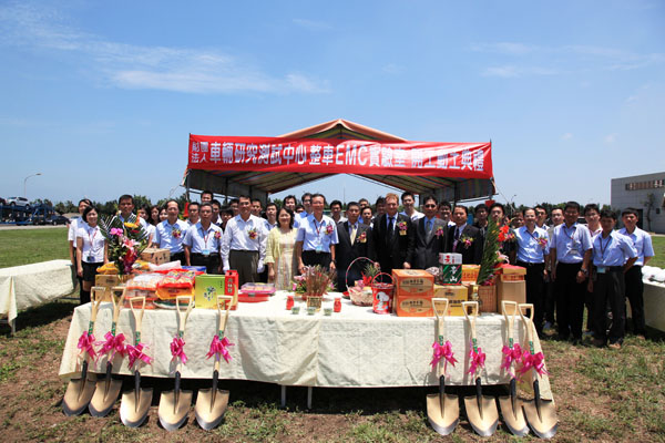 ARTC整車EMC實驗室7/29正式開工動土,由廖慶秋副總經理率領同仁,偕同黃鴻銘建築師、TDK Electronics Europe Gmbh Director Mr. Stuart Jackson、台灣東電化曾榮德副總經理、貴邦工程張瑞蘭理事長公司等共同持鏟動土。