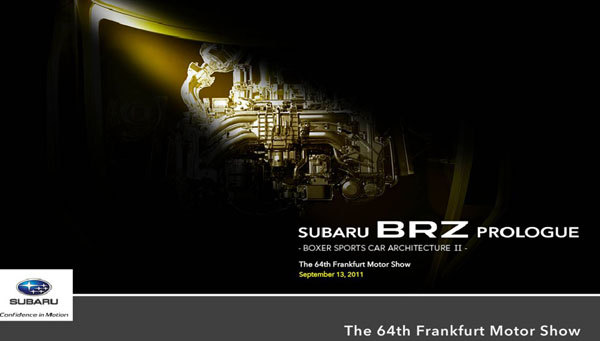富士重工將於第64屆法蘭克福車展,揭示全新「Subaru BRZ」跑車之技術概念–『Subaru BRZ PROLOGUE–BOXER Sports Car Architecture II』,預計於德國時間9月13、14日提供媒體搶先預覽,並於9月15日至9月25日開放民眾觀賞。最新訊息將同步公佈於以下網站: