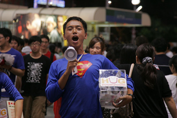 「Zoom-Zoom HUG」夏日特輯活動將走遍全台並募集愛心發票,活動大使「96五超人」在西門町大街上賣力宣傳,希望透過募集愛心發票幫助貧童與弱勢族群。