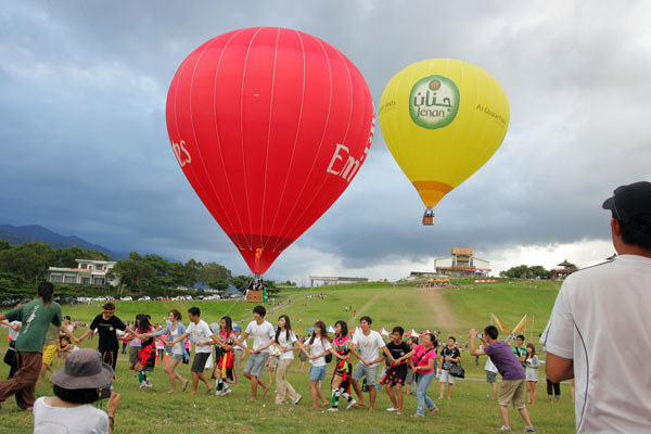 體驗遊樂設施後,當地原住民熱情邀約大家一同載歌載舞,「96五超人」立刻發揮大學生的青春熱血,赤著腳和大家手牽手,隨著音樂開心唱歌起舞!在鹿野高臺上體驗了歡笑、刺激又好玩的一天!晚上前往台東市區的鐵花村,在露天的草地上享受微風、音樂與沁涼的飲料,與知己好友喝茶談心,人生夫復何求?