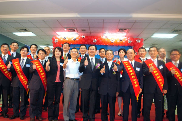 桃園縣縣長吳志揚與績優企業卓越獎得獎廠商大合照。