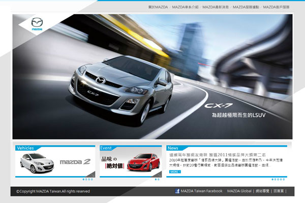 在全新Mazda Zoom-Zoom官方網站中,舉凡Mazda品牌國內外歷史、Mazda全車系新車、「御守護」服務及支援、Mazda御裝部品等內容,都有極為詳盡的介紹。同時網站也會隨時更新提供Mazda相關訊息,包括各項車主服務,「御守護」保養維修訊息、Mazda新車購車優惠活動等,歡迎大家隨時點閱http://Mazda.com.tw/獲取最新資訊。