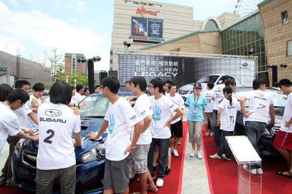 圖為上一屆台灣區SUBARU「堅手到底」耐力手拉松決勝時期大會所祭出的魔王關卡─單腳夾礦泉水,本屆將開放車迷提供關卡點子增加可看性。