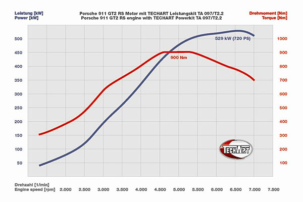 TECHART GTStreet RS的動力輸出曲線圖。