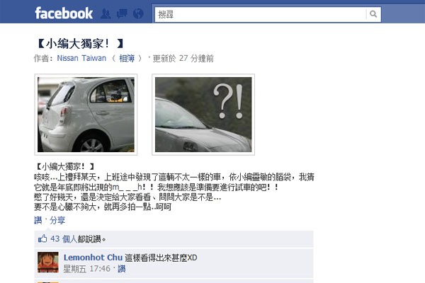 全新March於Nissan Taiwan臉書的間諜照相簿。
