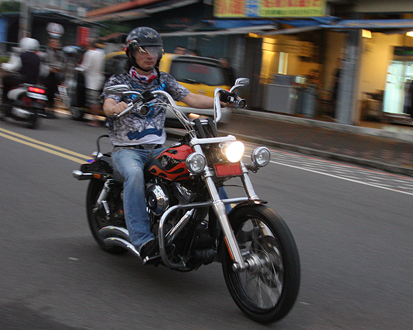 淡水漁人碼頭在一日內湧進了多輛個性化的哈雷車款。