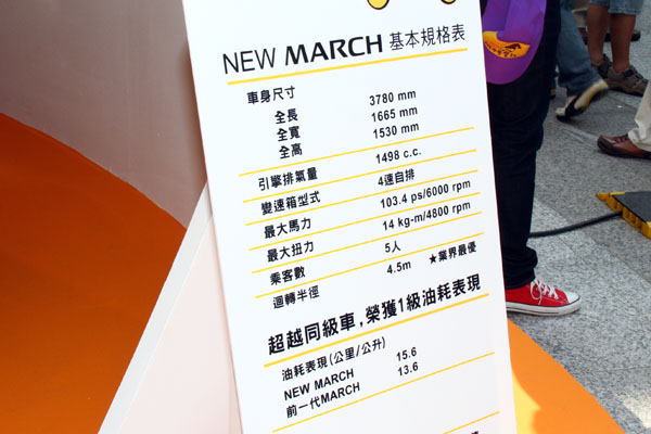 裕隆日產李振成協理表示,NISSAN March自1993年上市以來,連續熱銷14年,累積銷售超過14萬輛,不僅由車主自行成立臺灣第一個車主俱樂部,連年舉行的March城市尋寶記,也始終讓人津津樂道。為了迎接12月即將上市的全新Nissan New March,裕隆日產決定重現城市尋寶記,讓熱愛March的車主們再次聚首,重現March精神。