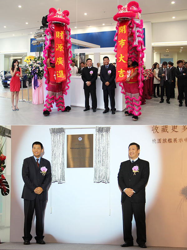 VW桃園旗艦展示中心隆重開幕,由太古標達汽車總裁黃齊力(上圖右,下圖左)與璿豐汽車董事長孟文斌共同揭幕。