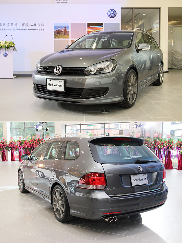 而在桃園旗艦展示中心開幕的同時,VW總代理太古標達汽車亦推出一系列Golf Variant的專屬精品套件。從具運動性能的Sporty跑車套件、展現休閒風格的Outdoor以及適合家庭親子同遊的Family系列等。Sporty部份:加裝前後下擾流板、尾翼、側裙、後廂鍍鉻飾板、不鏽鋼車門護碇飾板、碳纖維飾板、18吋鋁圈,並改上ABT短彈簧;而擁有濃厚休閒風格的Golf Variant車上則加裝了可載運獨木舟的車頂架、行李廂隔網、DVD多媒體影音組、霧燈組;至於走親子風的Family版本尚有腳踏車架、遮陽簾、休閒椅等精品配件。