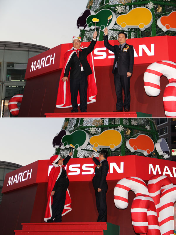 為了迎接新March的到來,裕隆日產汽車於統一阪急百貨台北店4樓廣場溫暖點亮快樂之光聖誕樹。(左:裕隆日產李振成協理 右:統一阪急劉育全經理)