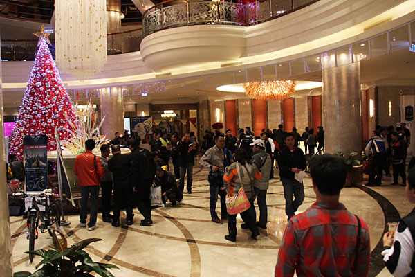 停妥車輛後,車友們趁著報到之際,也於飯店大廳相互閒聊寒暄,也藉機參加主辦單位安排的協辦廠商活動。