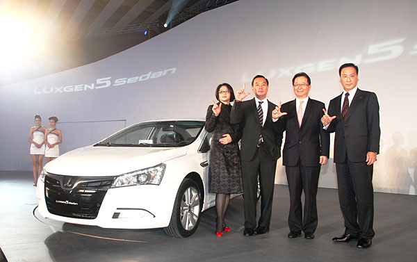 裕隆集團執行長嚴凱泰表示:「Luxgen5 Sedan的推出,不但展現自主品牌的承諾與研發實力,更進一步實踐品牌台灣的願景。」 (畫面由左至右分別為裕隆集團執行長嚴凱泰及夫人、Luxgen副董事長陳國榮、Luxgen總經理胡開昌)