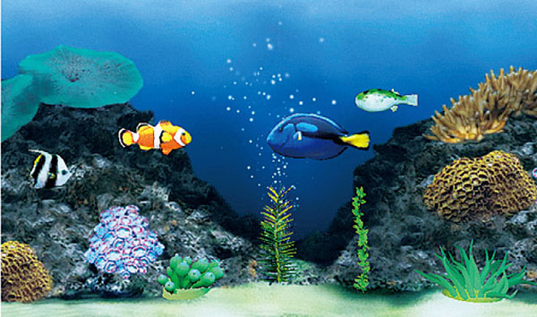 中控台9吋智慧觸控螢幕中的水族箱情境。