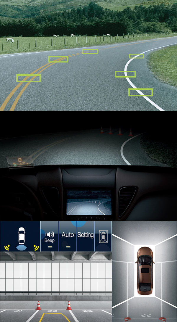 Night Vision+高感光夜視輔助系統的偵測範圍包括前方100公尺遠、40公尺寬以內的物體均可被顯像於螢幕中,高光感度的CCD,只要具有0.1 Lux(流明)的亮度即可感測、顯像。為降低駕駛者因為注意力不集中而無預警偏移車道,LDWS+行車偏移偵測警示系統在車速超過60km/h以上,即會自行作動。