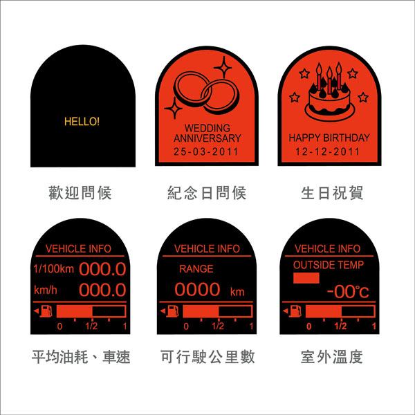 智慧E化輔助資訊系統,貼心提醒車主所有生日、紀念日,大小事通通牢記,更提供多種行車資訊警示功能。