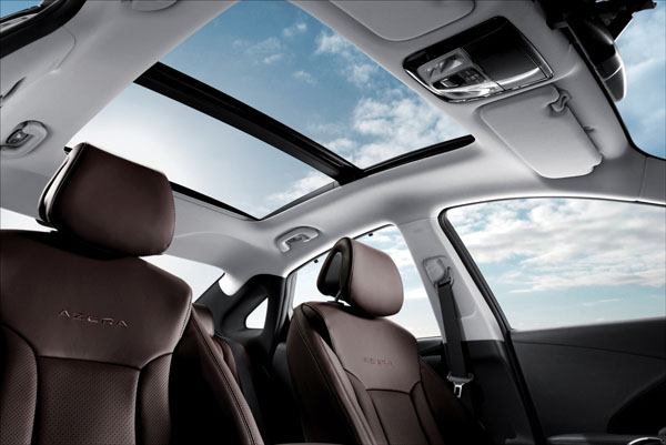 搭配Wide-Open全景式玻璃天窗,以無遮蔽的上方視野為設計目標,創造更大的透光面積,讓座艙的開闊感向外延伸;音響部分使用infinity 10聲道頂級環繞系統,具備530W大功率與Logic7數位音源解析,並搭配隔音與觸感極佳的麂皮車頂棚,創造極致的聆聽享受。第五代Azera是為了越級挑戰雙B、Lexus等豪華品牌,將Hyundai推升至更高的品牌位階而生,同時藉由不斷進化的科技水準,為消費者提供頂級的駕馭與乘坐體驗。