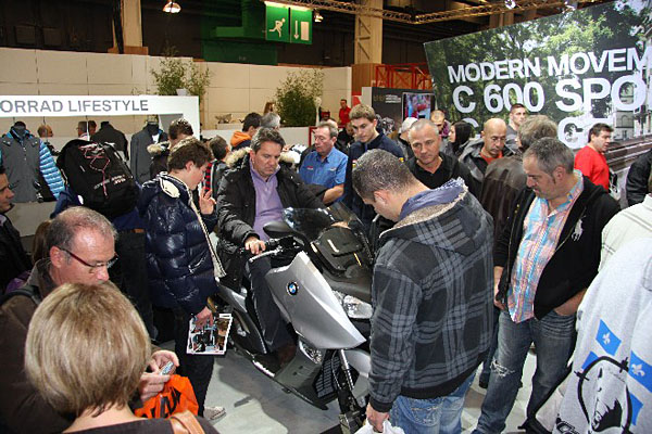 法國BMW Motorrad 自然也不甘示弱!佔地500 平方公尺的展區內,自展示第一天至最後一天都門庭若市!這其中的秘密自然就是明年即將正式豋場的Maxi-Scooter雙兄弟,C 600 Sport以及C 650 GT。展場中提供了預購服務以及產品解說。而等不及排隊等待專員解說的車迷們,貼心的車廠更提供了智慧型手機用的QR 碼讓手機用戶可以得到即時的線上支援。