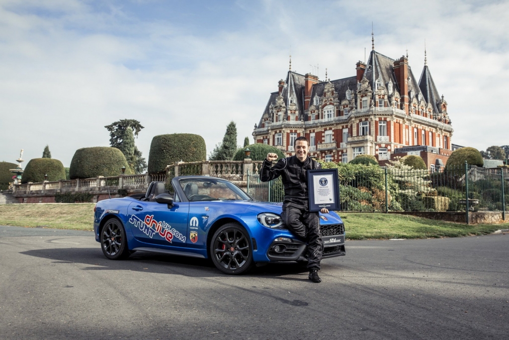 而近日金氏世界紀錄上又添了Abarth 124 Spider一筆,在特技車手Alastair Moffatt的操刀之下,以45.66秒的時間完成在2輛Abarth 124 Spider之間穿梭,連續五次「繞8」的最速紀錄,事實上這個挑戰是在今年7月於英國Chateau Impney Hill Climb爬坡賽上完成,直到近日才獲得金氏世界紀錄官方認可。