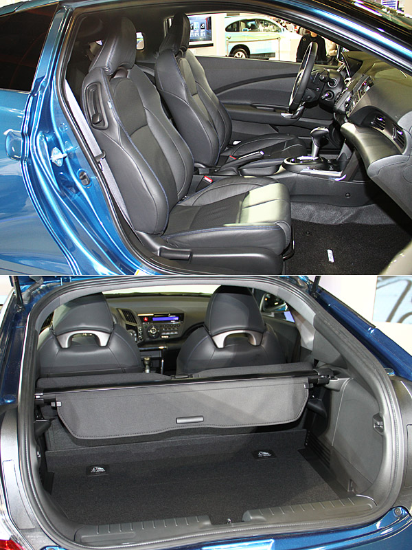 「CR-Z」原意是Compact Renaissance Zero縮寫,以Honda開發概念源自「駕馭樂趣的起點,從零開始」的新世代運動跑車款,結合油電科技展現對地球環保的新價值。「CR-Z」外型低車高、短軸距、寬輪距的跑車比例,車側方折線與C柱向後方內收的線條充滿動感,前後車型立體式樣展現張力。內裝黑色質感傳遞智慧座艙風格,跑車式小直徑方向盤與低坐姿包覆座椅,亮眼湛藍3D立體儀表猶如太空科技,群組化、集中的操作按鍵配置與變化空間規劃,成就車室內駕馭機能性。