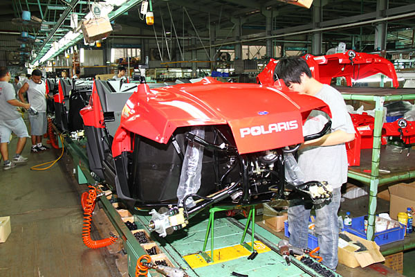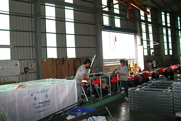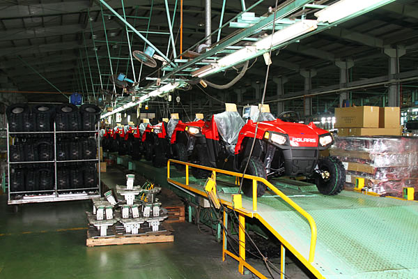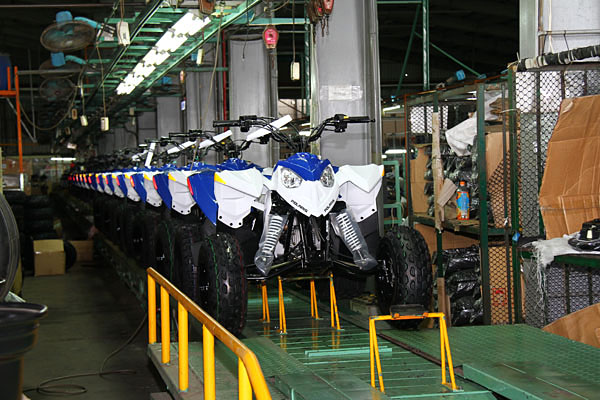 現場正在進行生產的,主要為Polaris旗下青少年使用的兩款ATV車型,其中一款為排氣量89c.c.的Outlaw 90,另一輛則為排氣量169c.c.的Rander RZR 170;同時,更有採訪組不曾見過的全電力驅動式ATV,則是與Polaris品牌同樣有淵源的Tomberlin此多功能車型生產品牌旗下之 Vanish E-UTV電動ATV車型。