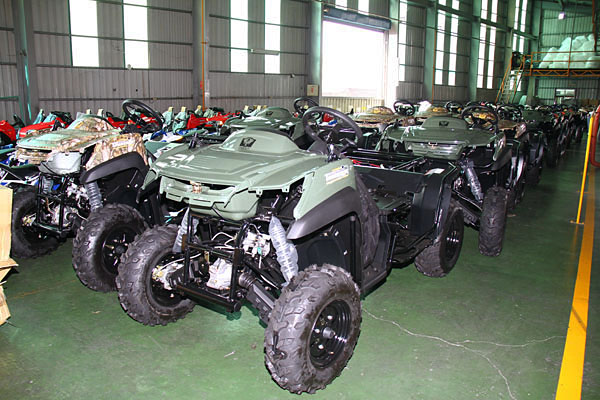 由於 採訪當天的製程安排,當時工廠所生產的車型,主要以外銷的ATV全地形多功能車為主,且由於AEON宏佳騰機車更是美國三大沙灘廠商之一的Polaris 所指定的境外唯一代工廠,因此生產的主要車型,以Polaris旗下多款ATV為主,因此幸運的是,此次親身走訪AEON宏佳騰機車生產基地之際,除了見 到AEON旗下市售車型以外,更一口氣見到許多台灣市場所難以親見的各式各樣ATV。