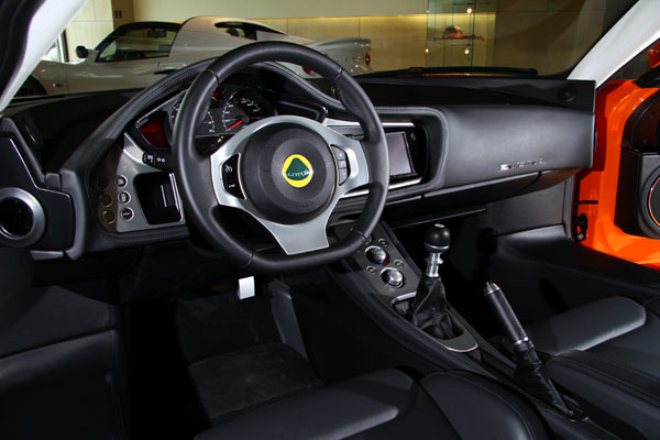 為吸引獨具生活品味的客層,車艙內裝有別於過去Lotus賽車導向的極簡輕量化戰鬥風格,包含儀表板、中控台、及座椅等處,均以質感精細的高級真皮所包覆,結合中控台上的觸控式多媒體系統、及冷光高科技儀表板,讓全車不僅散發高貴優雅的豪華氛圍,亦不失現今流行的科技前衛風格。