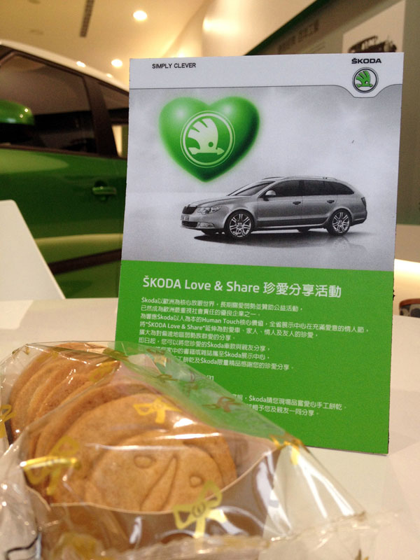 第二部份則邀請所有Skoda車主分享他的愛車品牌給親朋好友,凡活動期間邀請親友一起到Skoda展示中心賞車試駕不但可以一同品嚐愛心餅乾,還可以獲得珍愛分享好禮一份“Skoda 限量Polo衫+原廠棒球帽”,讓大家都成為Skoda的好友。